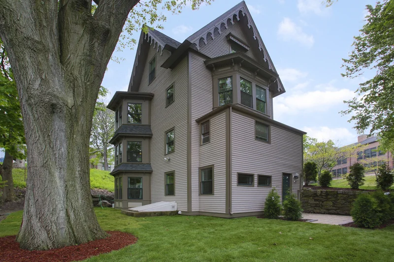 The construction scope consisted of lifting the house off the existing foundation to perform significant structural repairs to the masonry foundation and lowest level of the wood construction. The most unique aspect of this building is the gingerbread bargeboards located under the gables along each façade. These bargeboards were temporarily removed then restored and/or replaced as necessary. The gothic motif cut-outs on the front facade making up the heavy window heads were reconstructed and repaired. The frieze along the front façade was reconstructed and the oriel window was repaired as necessary.